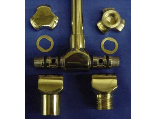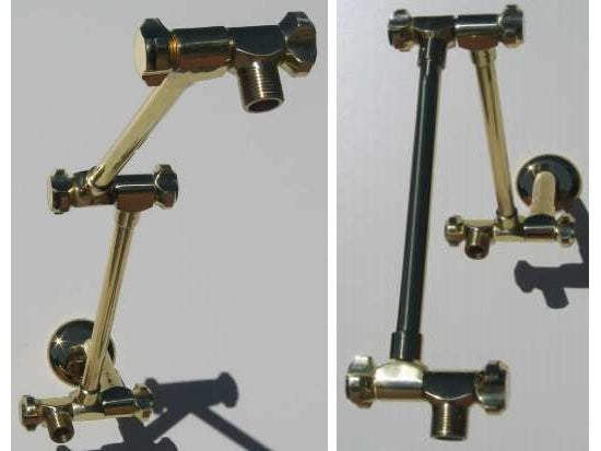 Our double shower head arms now come with an easier to adjust Tri-Star nut and the anti-sag spline lock. The first extension arm is now held in place by a positive spline lock to prevent sagging. Look closely at the far right pictures above and you can see the spine inside the joint. Also notice how few pieces there are. No fiber washers to wear out. All of the seals are common o-rings. Now our Double Shower Head Arms are better than ever.