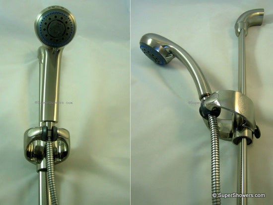 Flow inserts are included with every ISA Slide Rail Set. These inserts allow you to adjust the flow according to your water pressure. Simply unscrew the hose from the handheld shower head and insert the restrictor that's right for your water pressure. No tools required. All ISA handles come with a set of flow restrictors. (Flow restrictors do not fit in non-ISA 5 Setting massage handles.)