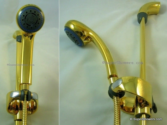 Beautifully crafted in Italy by ISA, the VIP series is the top of the line slide rail. Featuring solid brass swivel mounting brackets, a stylish elliptical all brass slide bar and 3-setting massage shower head. This is the slide rail shower set that sets the standard for quality and elegance. Your new ISA Hand Held Massage Shower Head adjusts easily to the spray setting you prefer. The unique elliptical brass slide bar for the hand held shower measures 60 cm (2 feet) to raise and lower the shower head and swivels a full 180o. Included is a 150 cm (5 feet) double lock brass hose designed for years of use. The entire family will find adjusting the height and angle of the shower head simple and easy-to-use even for a child. No knobs to tighten or loosen. Simply push on the tab on the back of the sliding yoke and adjust the shower head position to what's right for you. The same easy to use sliding yoke as featured on the ISA Yoga Slide Rail Set, even a child can adjust the height of the head. No knobs to tighten or loosen.